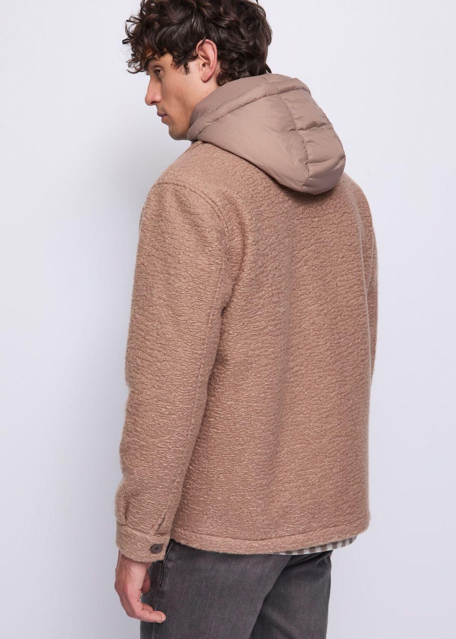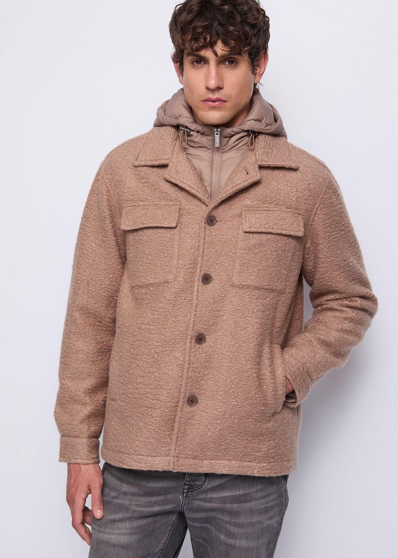 Questa giacca overshirt in bouclé combina stile sofisticato e comfort quotidiano. La pettorina interna con cappuccio e zip in nylon imbottito aggiunge calore e funzionalità, mentre il collo a camicia e i taschini con patta sul petto definiscono il design con dettagli classici. Le tasche laterali offrono praticità, e i polsi con bottone e la chiusura frontale con bottoni completano il capo, rendendolo versatile e perfetto per look stratificati dall’allure contemporanea.