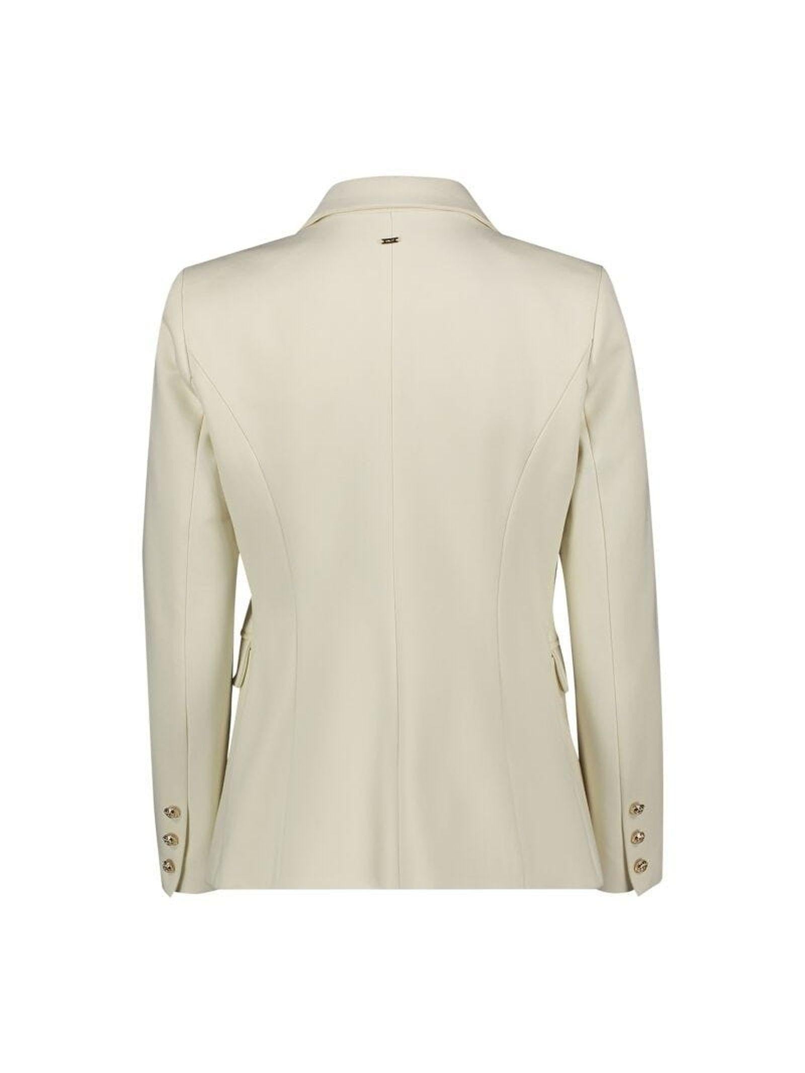 Giacca realizzata in misto viscosa elasticizzata, caratterizzata da un collo revers a lancia, taschino a filetto sul petto e due tasche con patta sui lati, chiusura doppiopetto con bottoni dorati logati, e una fodera interna.