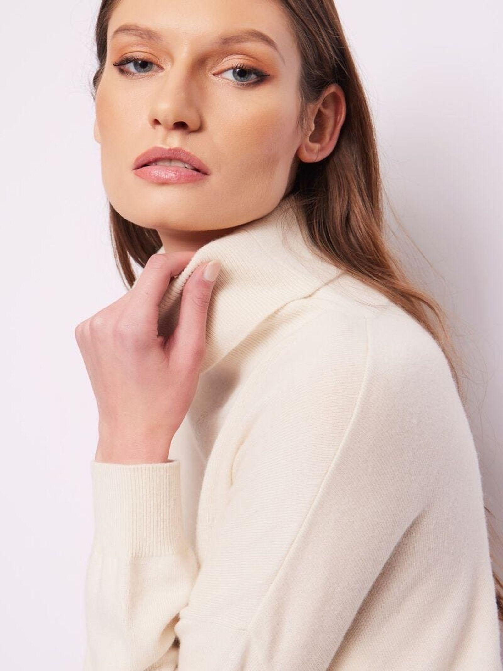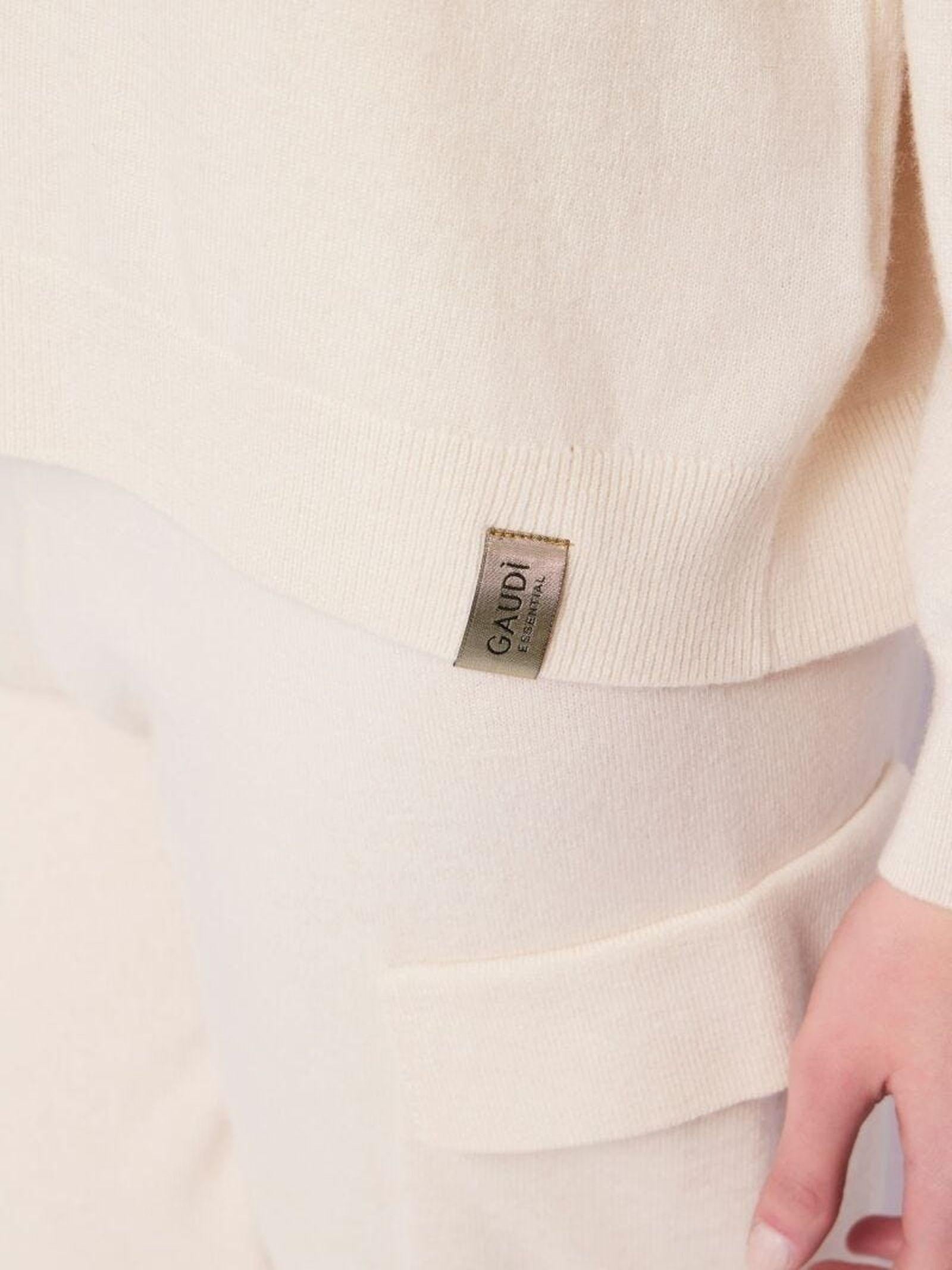 Maglia realizzata in misto lana e cashmere caratterizzata da collo a dolcevita e maniche lunghe, bordi a costine, logo al fondo.