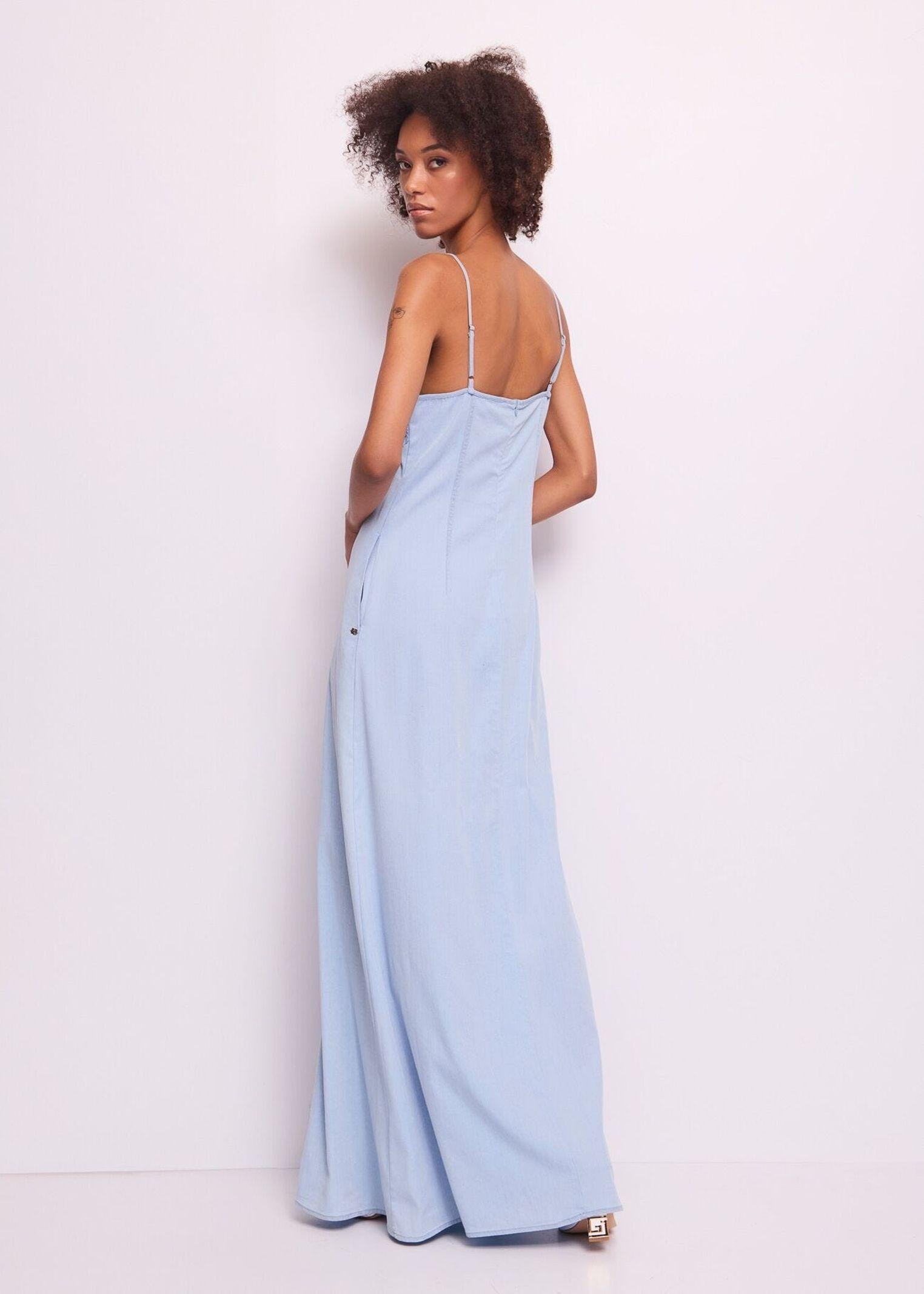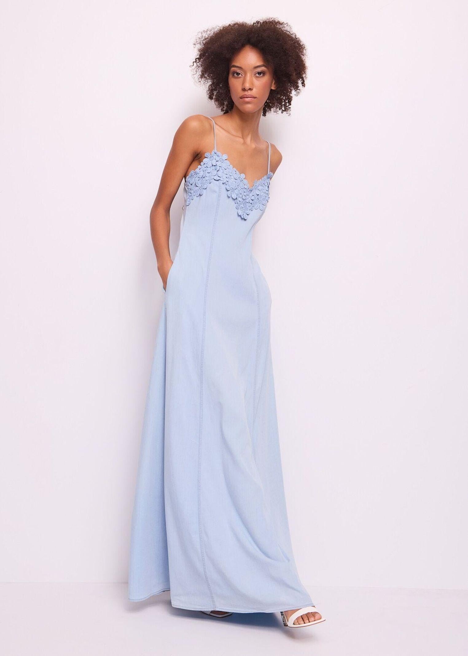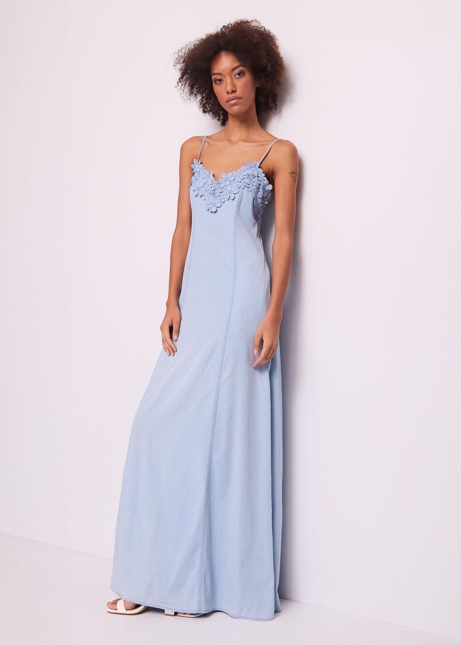 Abito lungo con ricami floreali