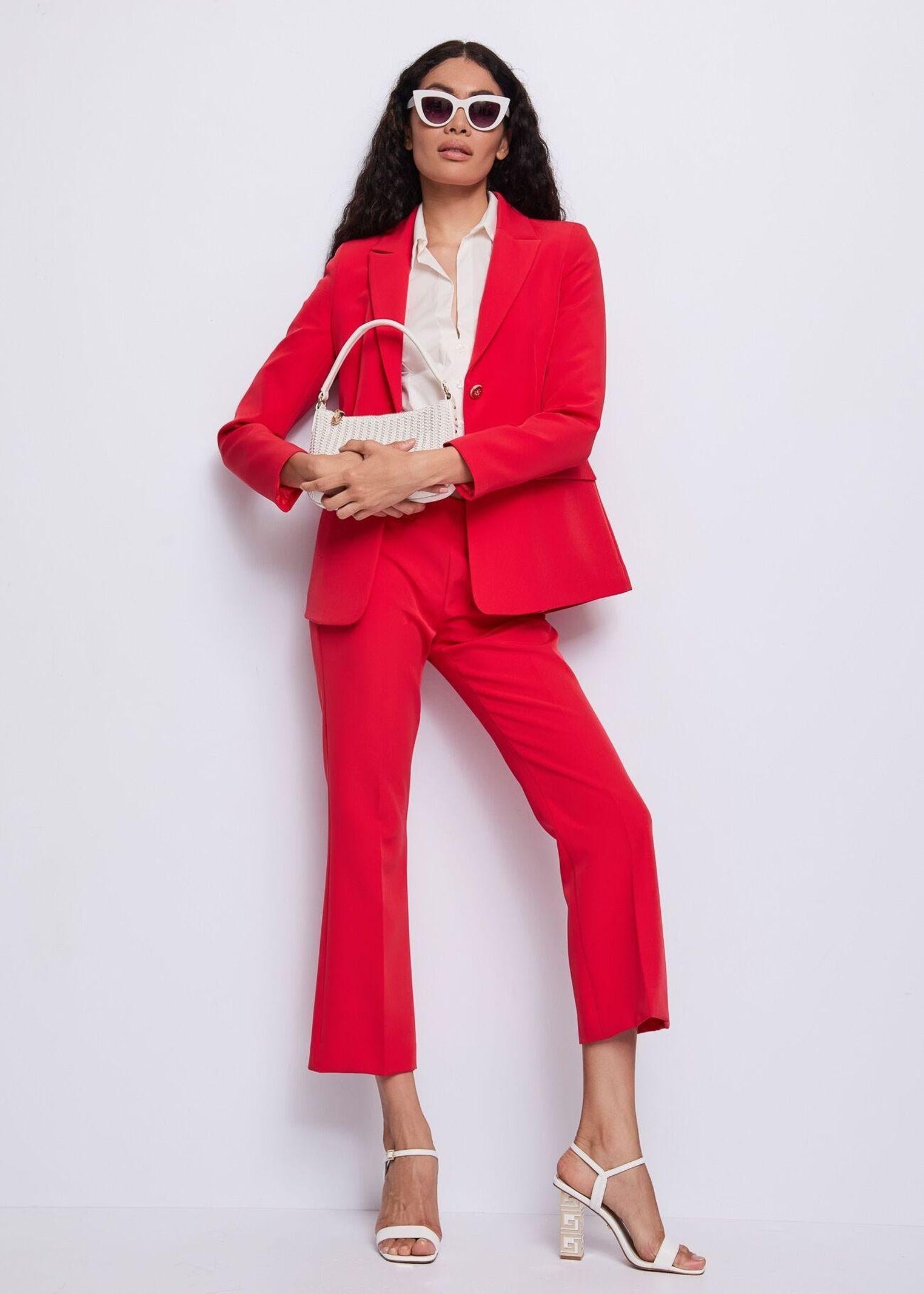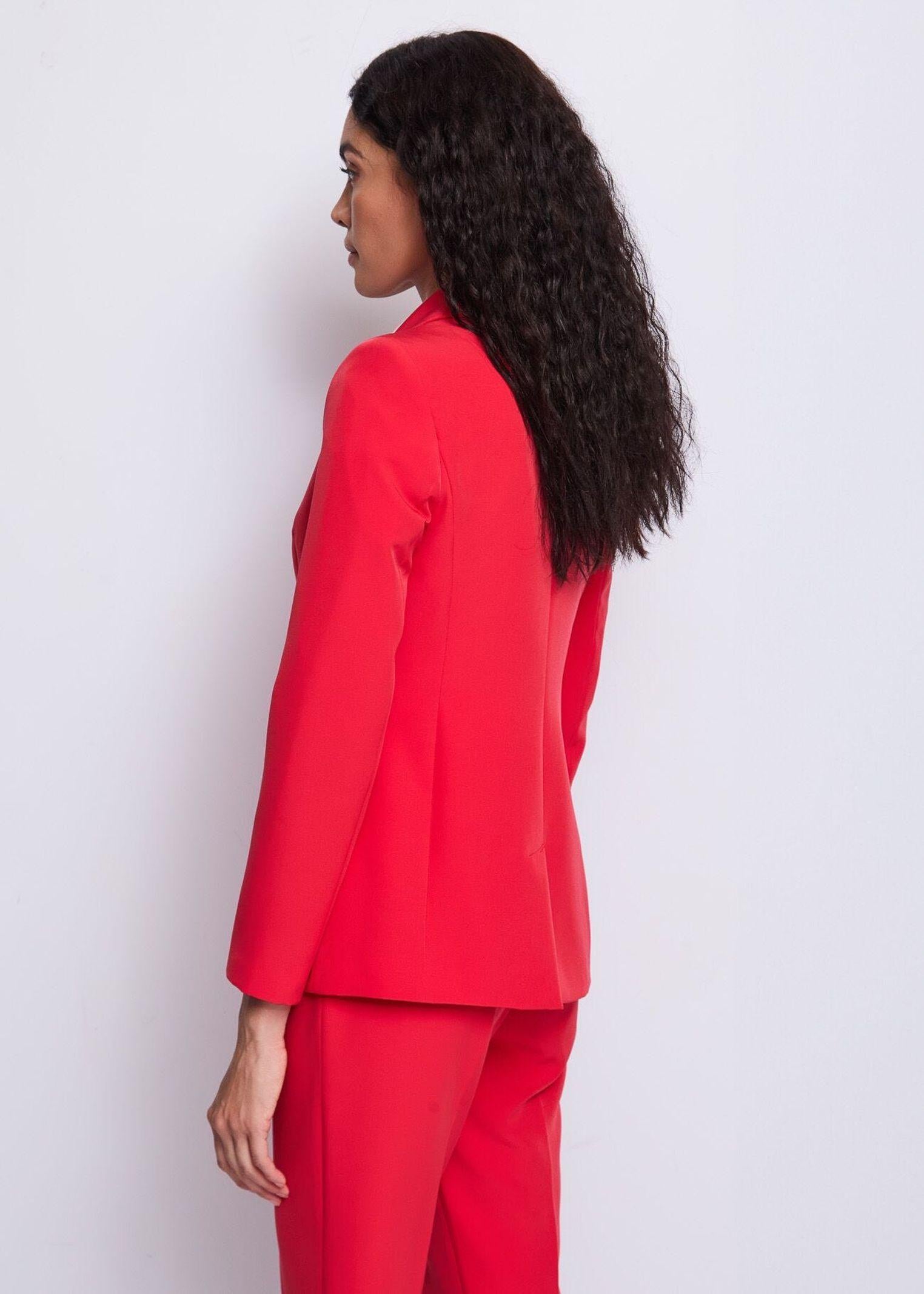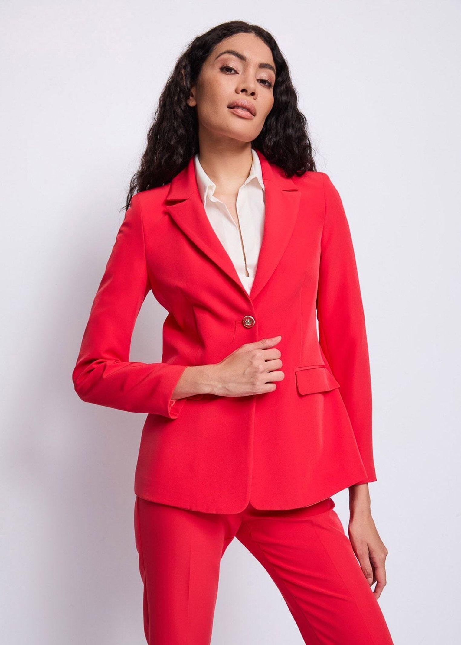 Giacca monopetto con revers a lancia, vestibilità aderente e tasche con patta frontali. Questa giacca dalle linee morbide e stile minimal può essere abbinata al pantalone coordinato.