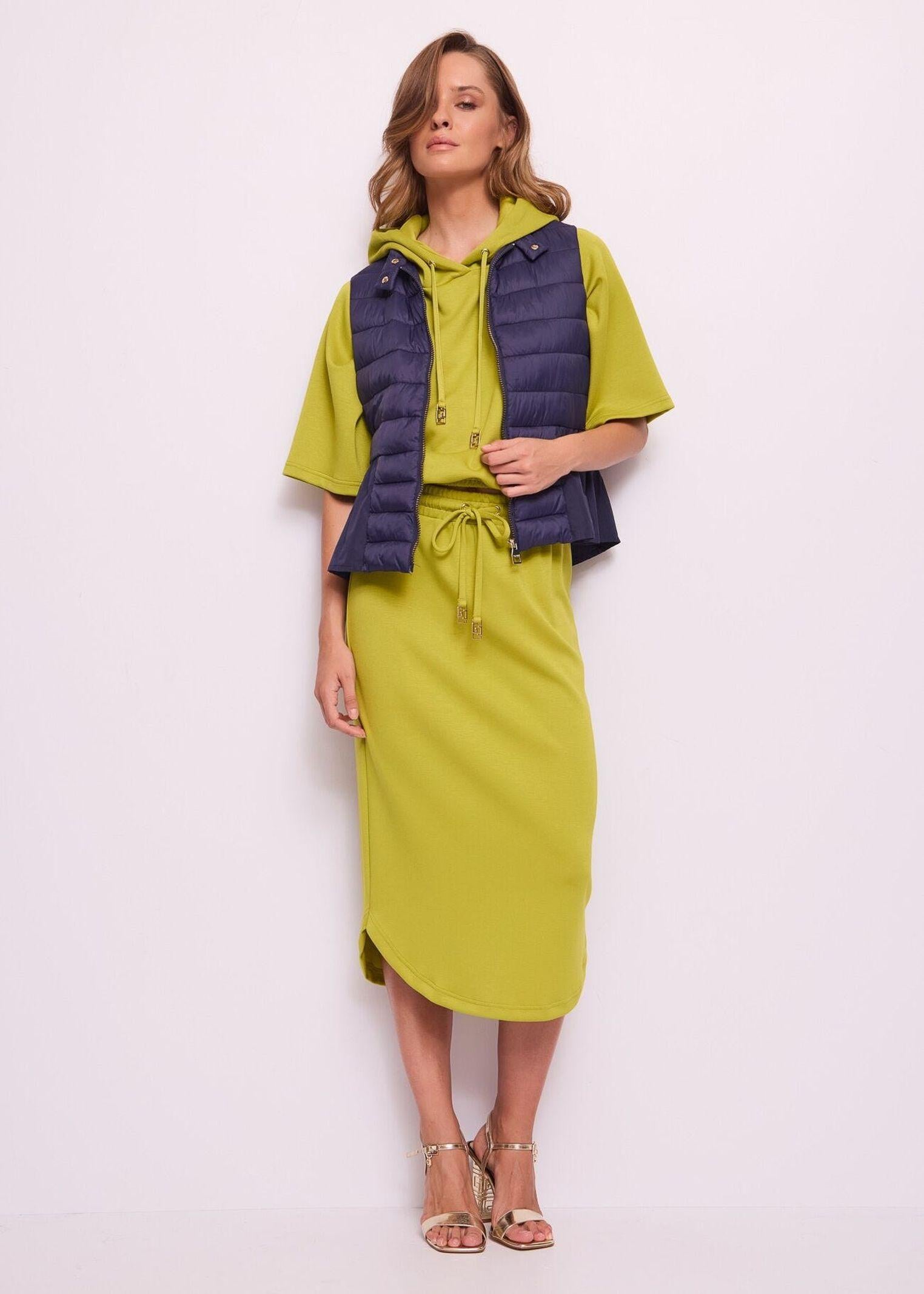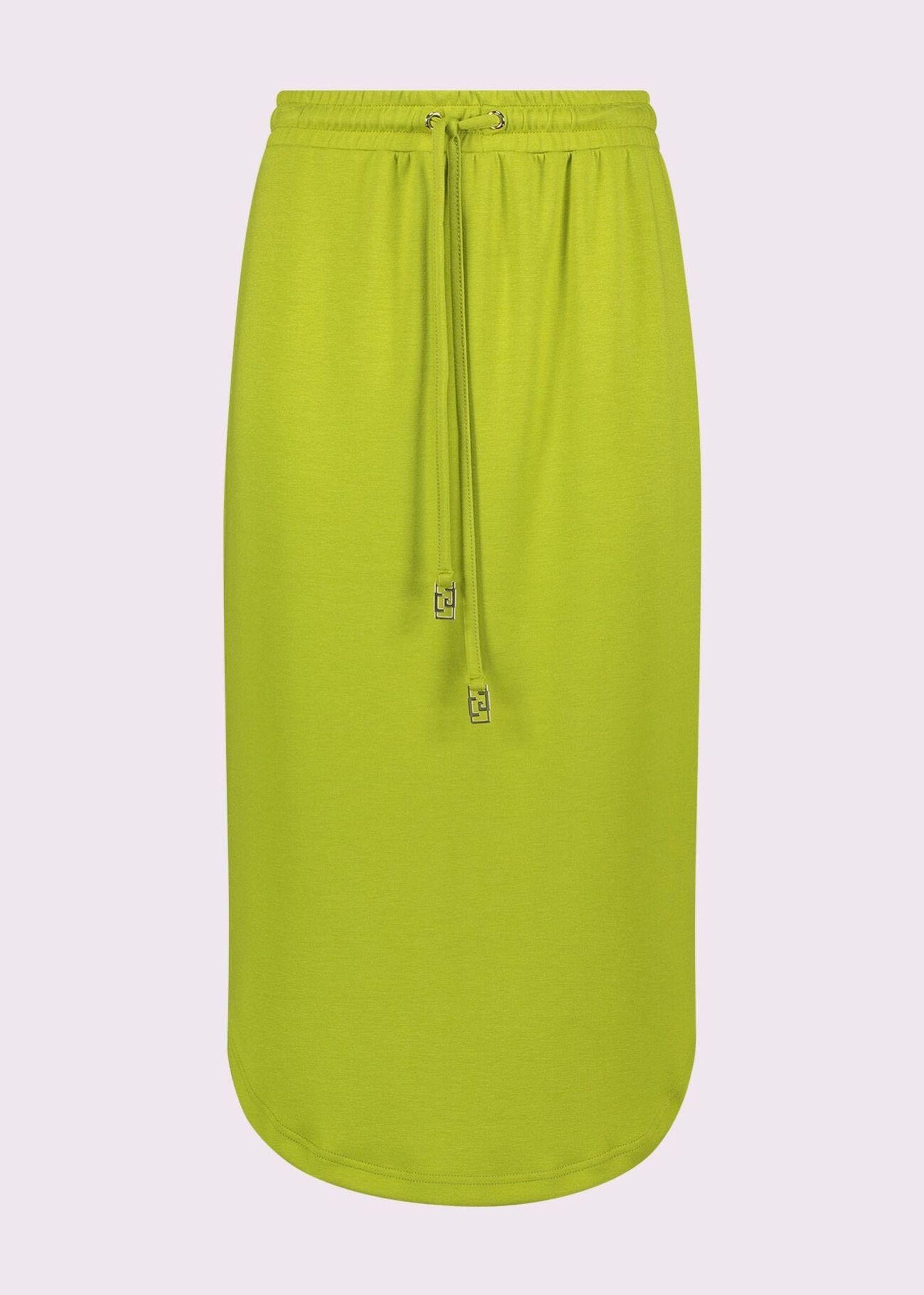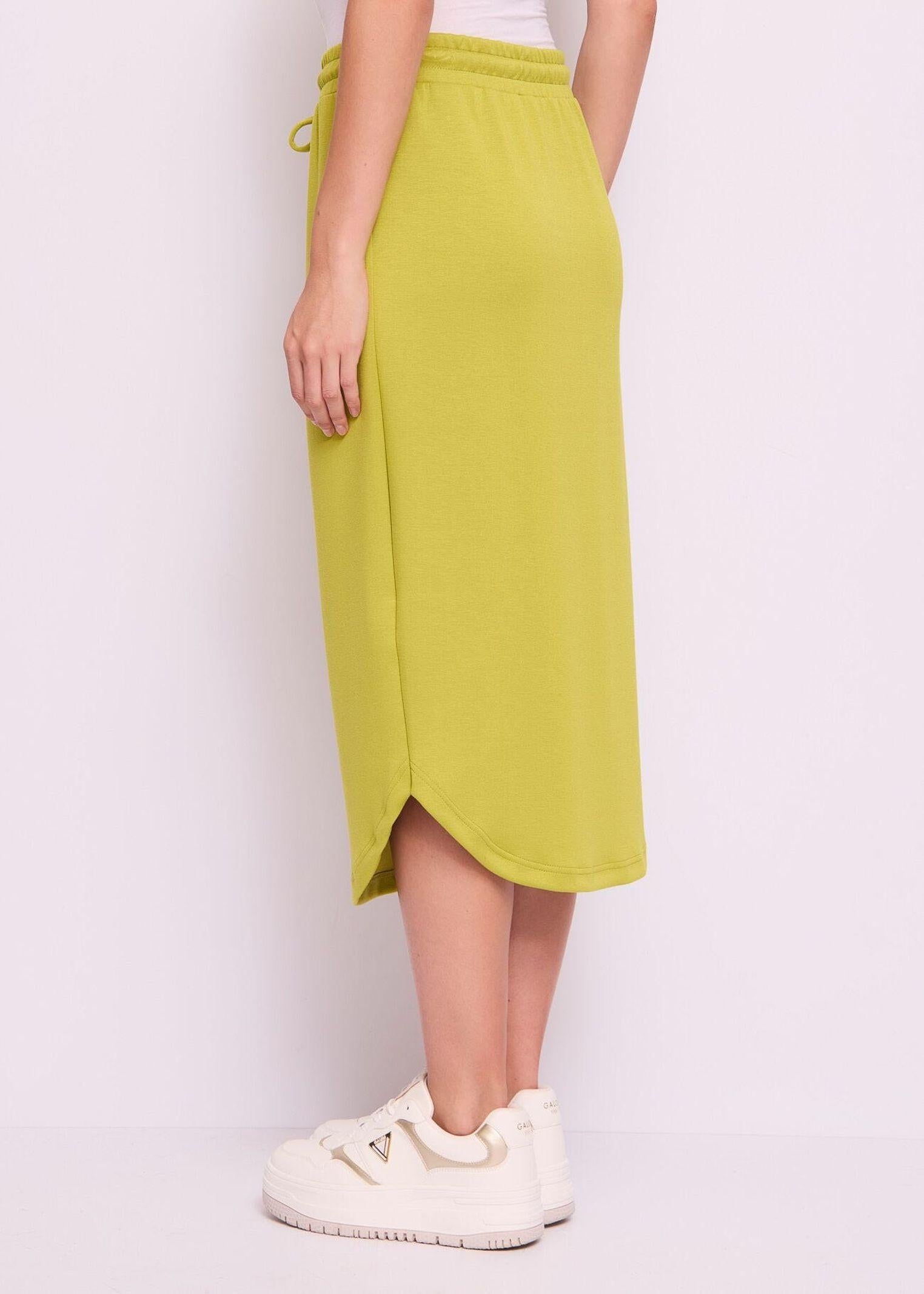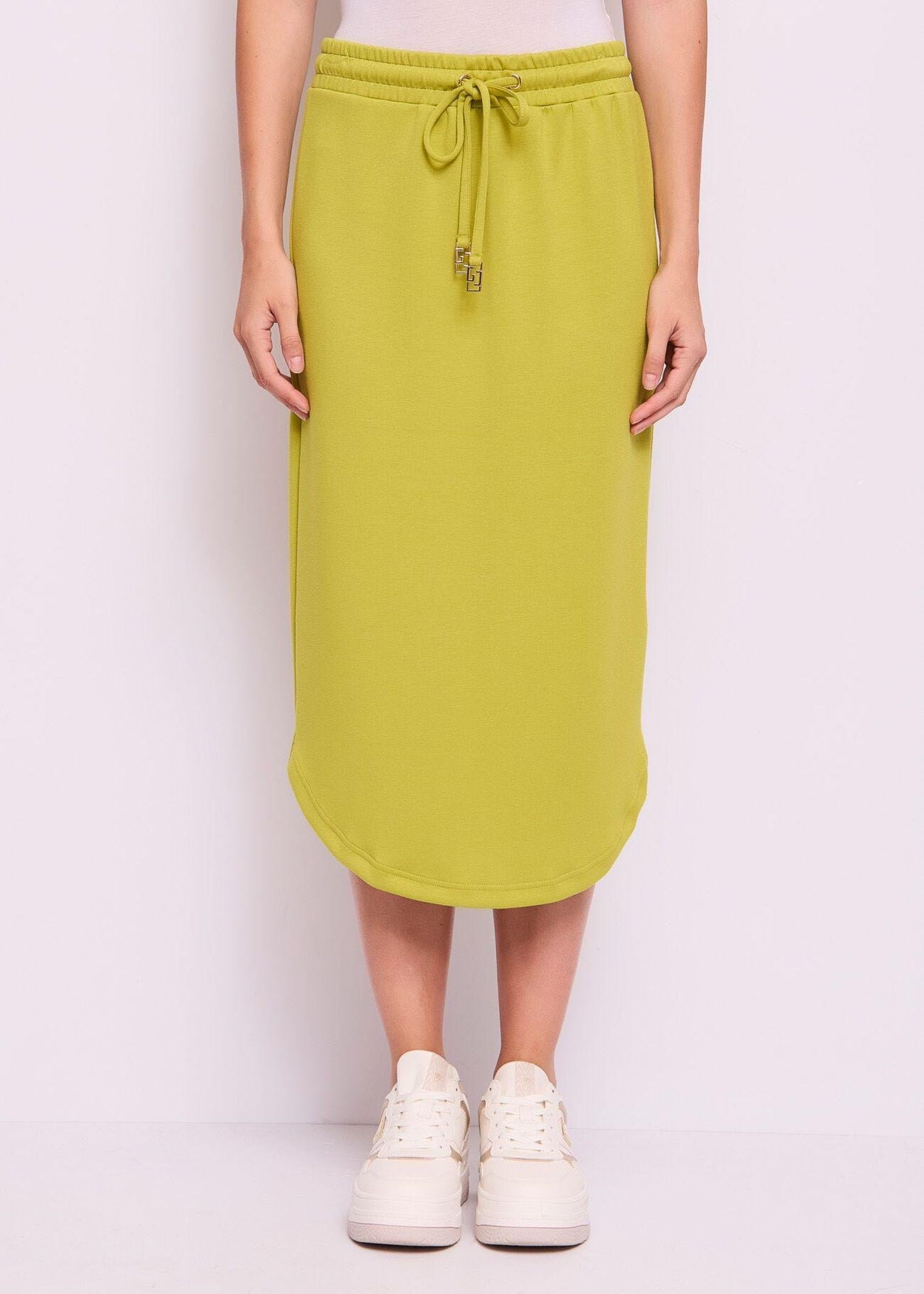 Gonna longuette in scuba leggera e traspirante, con lunghezza midi e linea fluida che valorizza la figura. La vita è elasticizzata e regolabile grazie a una coulisse logata, mentre le tasche laterali aggiungono praticità al design. La vestibilità comoda e moderna la rende perfetta per un look casual dal tocco sportivo.