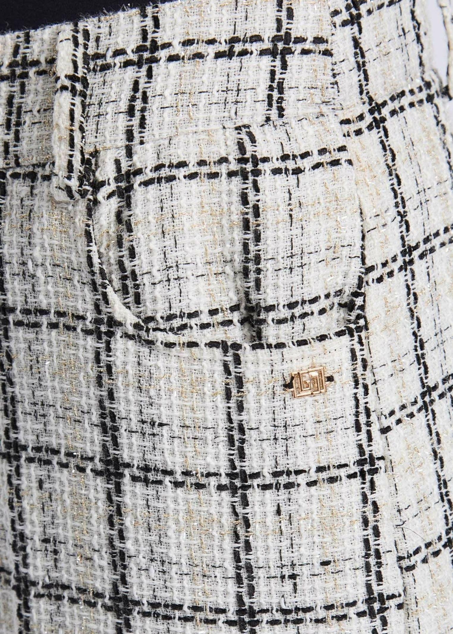 Pantaloni in tweed di misto lana check con piega stirata e logo GJ in metallo, un capo che combina charme classico e spirito contemporaneo. Realizzati in un tessuto pregiato e strutturato, offrono una vestibilità impeccabile e un’eleganza senza tempo. Il motivo check dona carattere e versatilità, perfetto per creare look sofisticati e moderni da giorno o da sera.