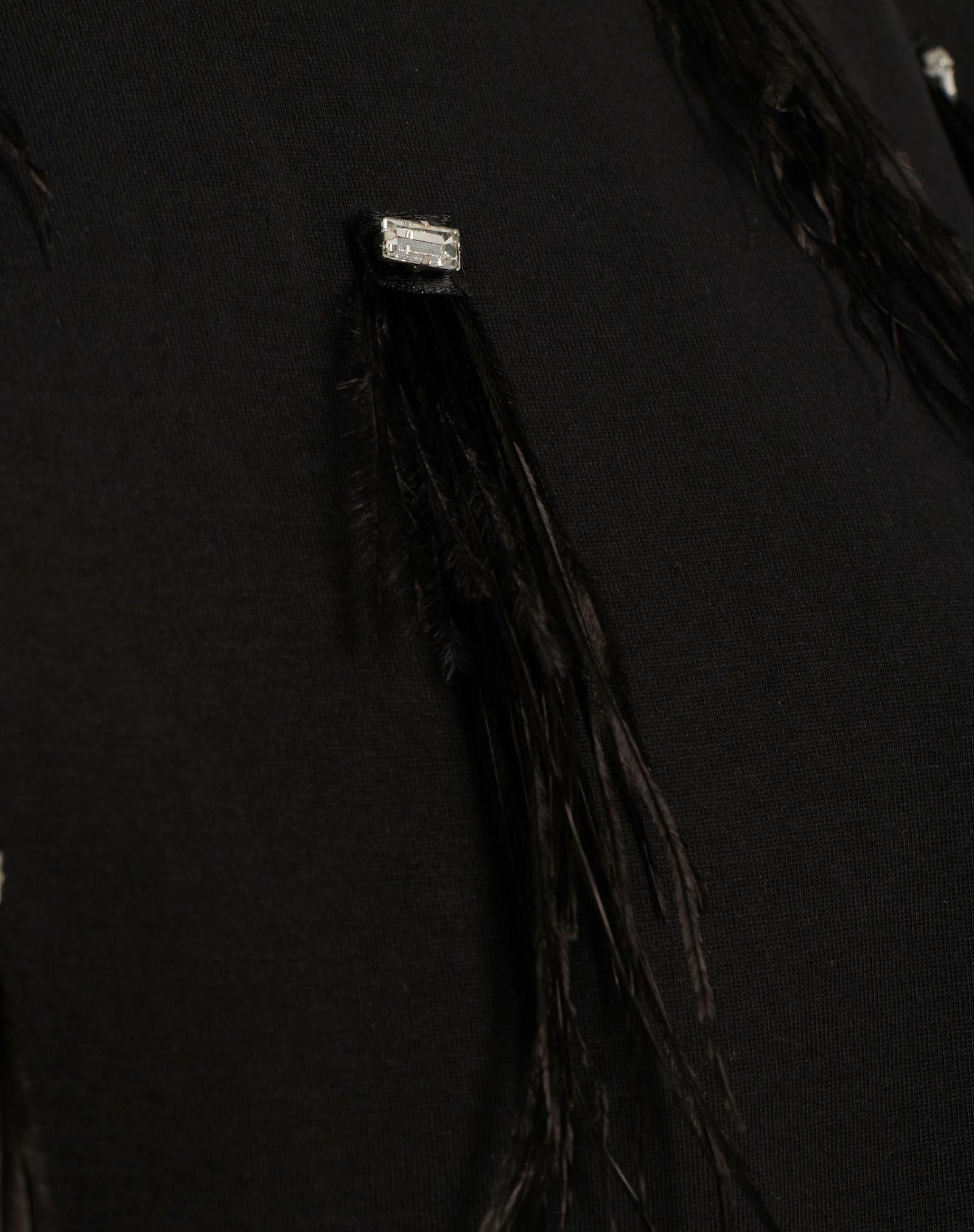 T-shirt realizzata in jersey di cotone dal taglio ampio con spalle leggermente estese. Il design è impreziosito da applicazioni di frange tono su tono fissate con dettagli gioiello in strass, per un effetto scenografico e ricercato. Un capo statement che dona carattere anche al look più semplice, perfetto per outfit casual-chic o da sera con un twist originale.